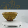 Vor Dir liegt ein Chawan, dessen Erscheinung unmittelbar an die frühe Ki-Seto-Ästhetik (黄瀬戸) erinnert – warmes Ocker, bernsteinfarbene Übergänge und ein Inneres, das wie glühende Kohlen in einer alten Mino-Anagama wirkt. Die Form öffnet sich weit und rundet sanft zur Lippe hin ab, was sie dem klassischen Wa-nari (輪形) zuordnet.