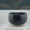 Die tiefe Schwärze, die unregelmäßige Randführung, der handgeschnittene Kodai, die sichtbaren Brandspuren und der freie Signaturstempel ergeben zusammen ein Einzelstück, das Charakter zeigt. Sie wirkt wie ein kleines Gefäß der Stille – warm, dunkel, erdig – und doch voller Intensität, sobald sich der leuchtende Matcha darin ausbreitet.
